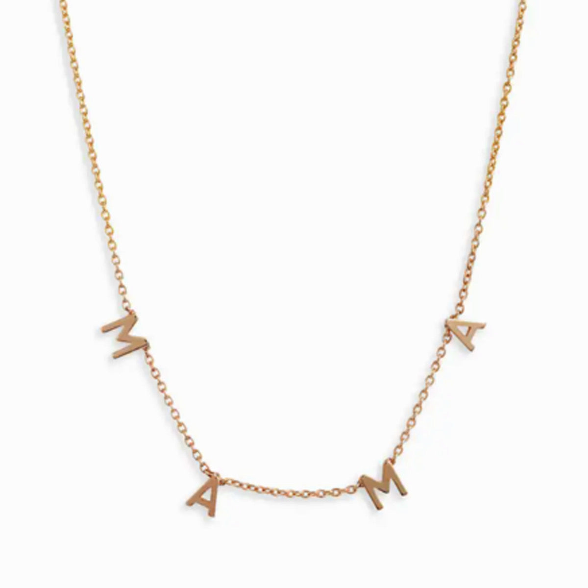 This dainty tarnish resistant necklace is composed of a single chain with block lettering that spells out the word “MAMA”. This necklace makes the perfect tribute to your beloved Mama.